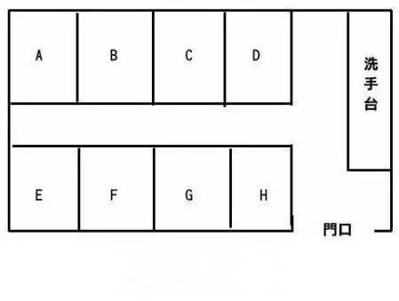 題目:你要去一個布局如下圖的公共衛(wèi)生間,里面沒有一個人,那么憑直覺你會選擇去哪個小間方便呢?