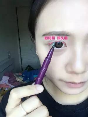1.我建議剛學(xué)畫眼線的童鞋,使用液體眼線筆。畫眼線首先在眼頭、眼中、眼尾各畫上一筆,定好每個(gè)位置眼線的粗細(xì)。一般來(lái)說(shuō)都是眼頭細(xì),眼尾粗。