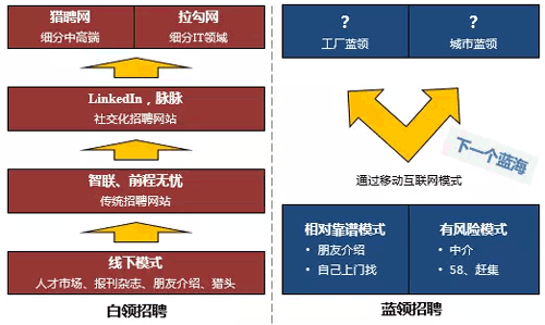 通過(guò)分析整個(gè)招聘行業(yè),我們看到白領(lǐng)招聘已經(jīng)互聯(lián)網(wǎng)化并進(jìn)入細(xì)分競(jìng)爭(zhēng)階段。由于智能手機(jī)的普及,藍(lán)領(lǐng)招聘剛剛進(jìn)入移動(dòng)互聯(lián)網(wǎng)化的窗口期,尚未有成型的玩家出現(xiàn)。信息源:揭陽(yáng)人才網(wǎng)_www.shyqwle.com