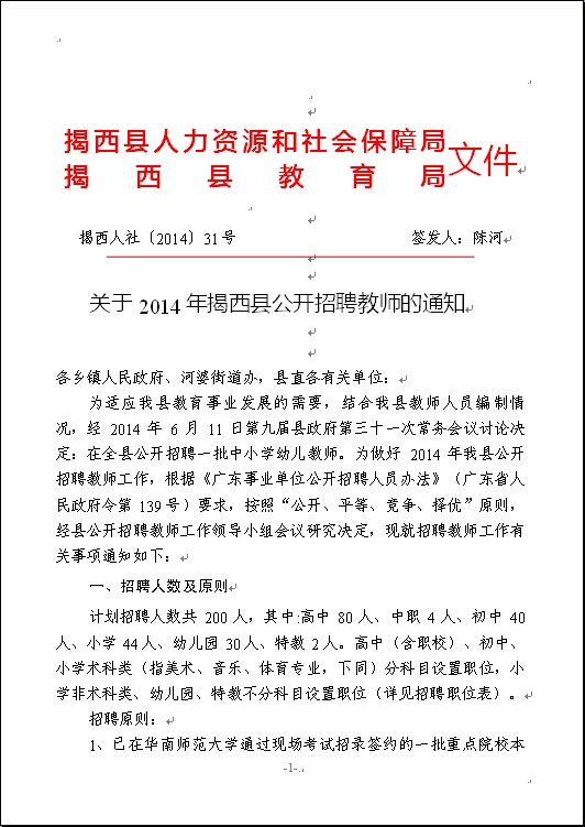 您的位置:網站首頁 > 職場資訊 > 公務員專欄 > 報名招考信息 > 2014年揭西縣公開招聘教師的通知
